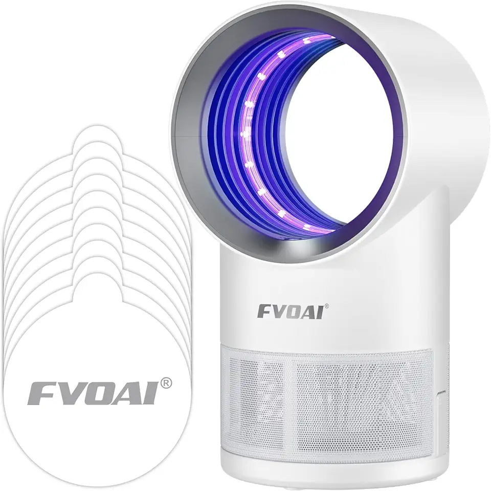 FVOAI’s Fruit Fly Trap in white combines UV light, suction, and 10 sticky glue boards for effective indoor pest control. With customizable time settings, it’s ideal for homes or kitchens. Quiet, non-toxic, and easy to maintain, this trap keeps fruit flies and mosquitoes at bay, ensuring a clean living space.